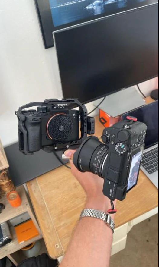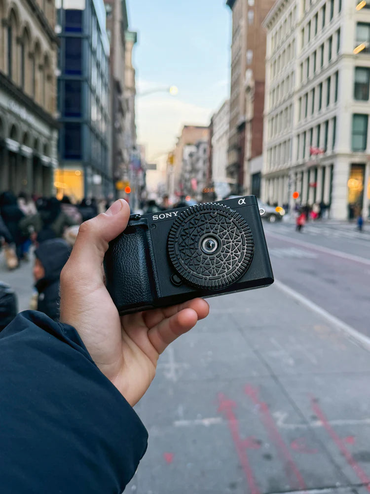 Pancake-thin profile. Pocket weight. Your mirrorless becomes the camera you actually bring. Film aesthetics without the bulk, cost, or wait.